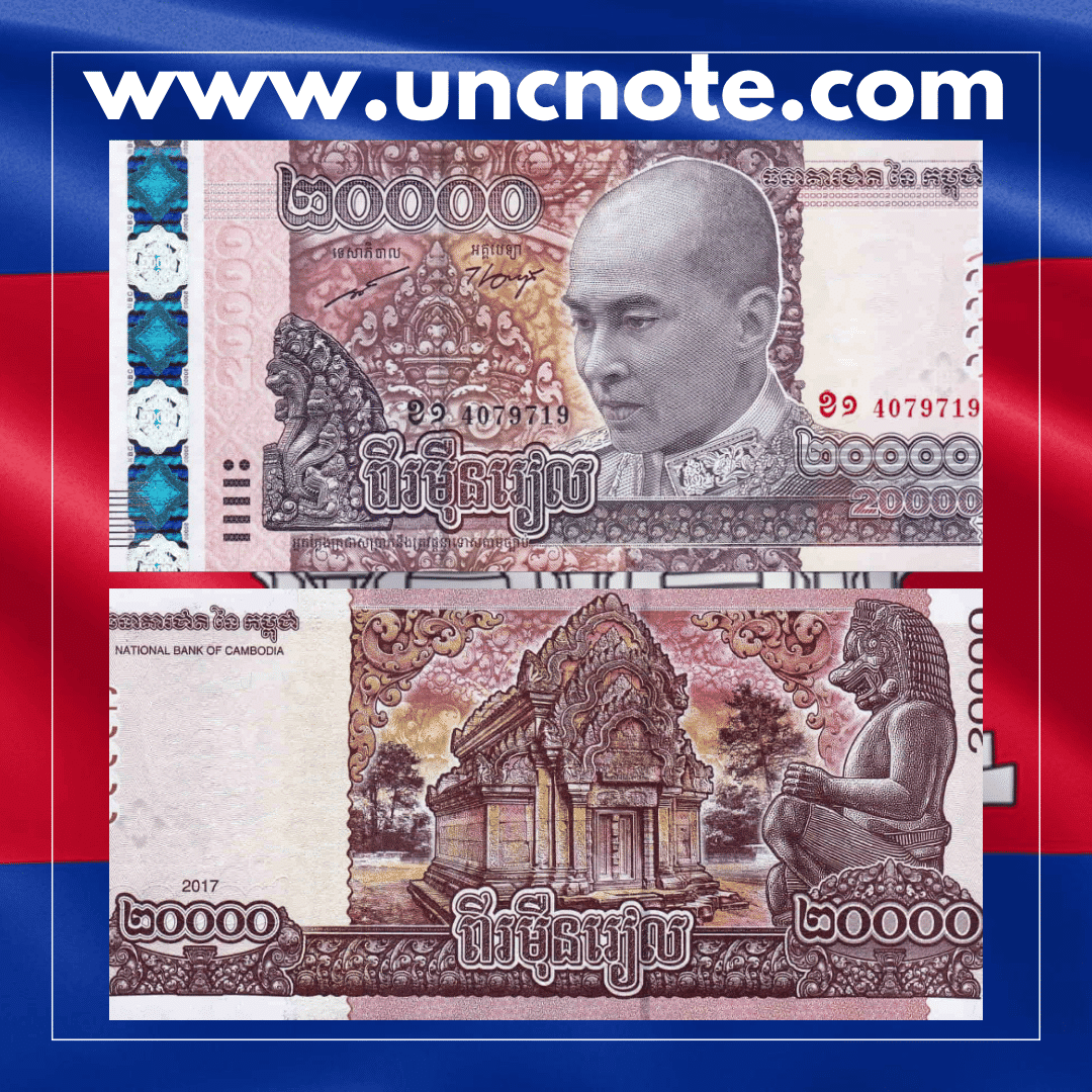 The Cambodia 20000 Riels 2017 (Commemorative) UNC banknote is an authentic piece of world paper money offered in uncirculated condition, carefully selected for collectors of international banknotes.
