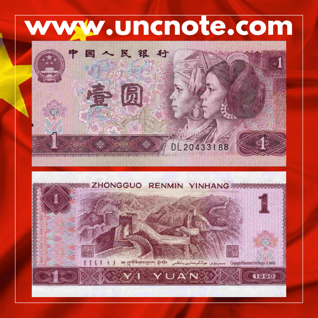 The China 1 Yuan 1990 UNC banknote is an authentic piece of world paper money offered in uncirculated condition, carefully selected for collectors of international banknotes.