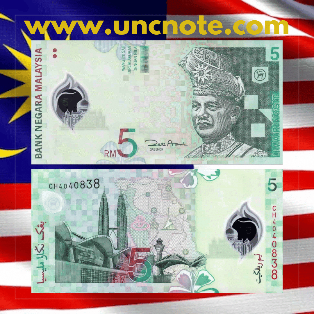 The Malaysia 5 Ringgit 2004 UNC banknote is an authentic piece of world paper money offered in uncirculated condition, carefully selected for collectors of international banknotes.