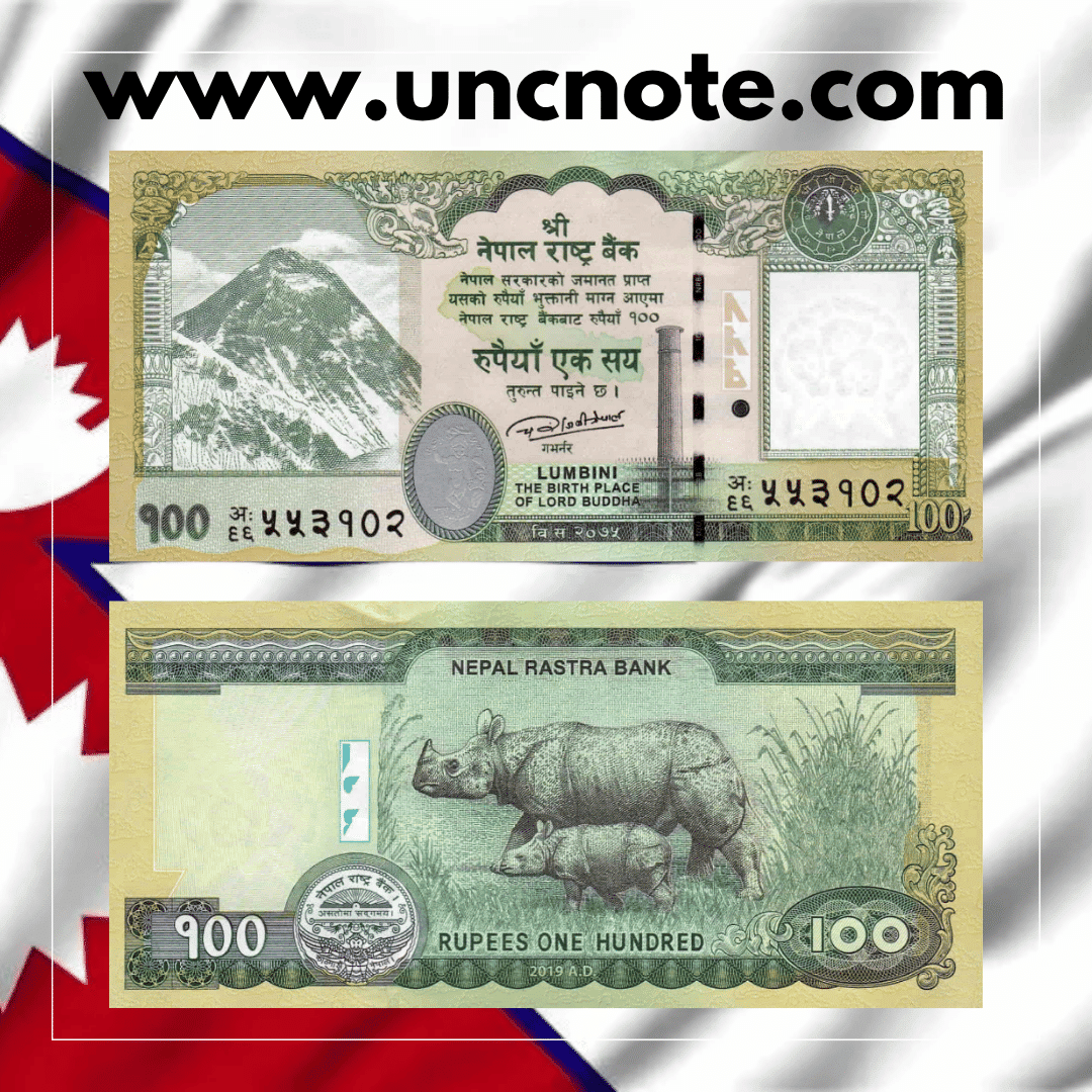The Nepal 100 Rupees 2019 UNC banknote is an authentic piece of world paper money offered in uncirculated condition, carefully selected for collectors of international banknotes.