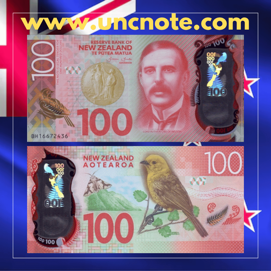 The New Zealand 100 Dollars 2016 UNC banknote is an authentic piece of world paper money offered in uncirculated condition, carefully selected for collectors of international banknotes.