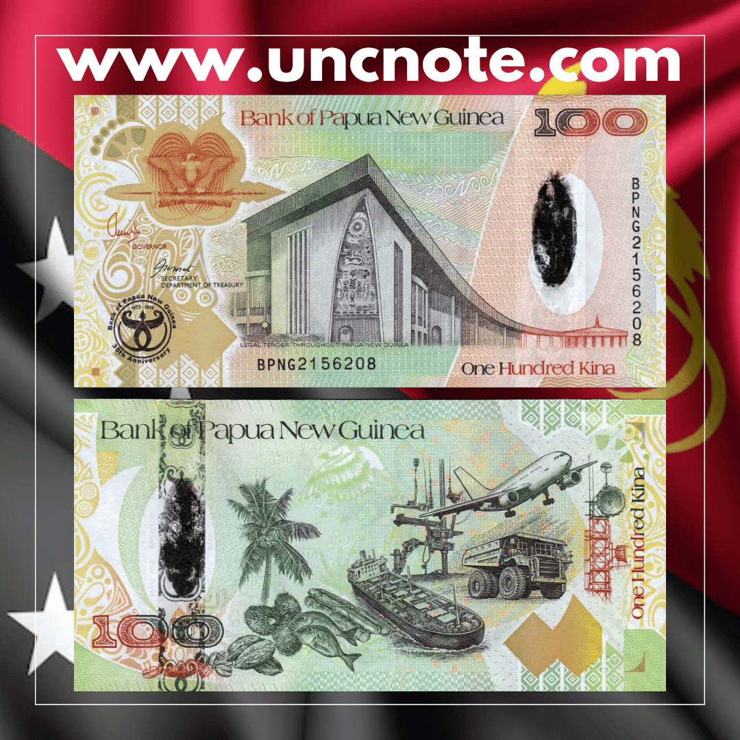 The Papua New Guinea 100 Kina 2008 UNC banknote is an authentic piece of world paper money offered in uncirculated condition, carefully selected for collectors of international banknotes.