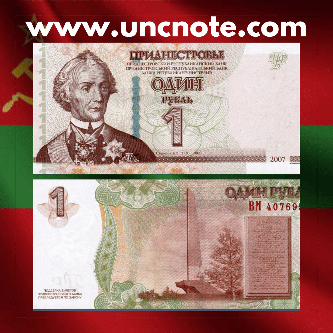 The Transnistria 1 Rublo 2007 UNC banknote is an authentic piece of world paper money offered in uncirculated condition, carefully selected for collectors of international banknotes.