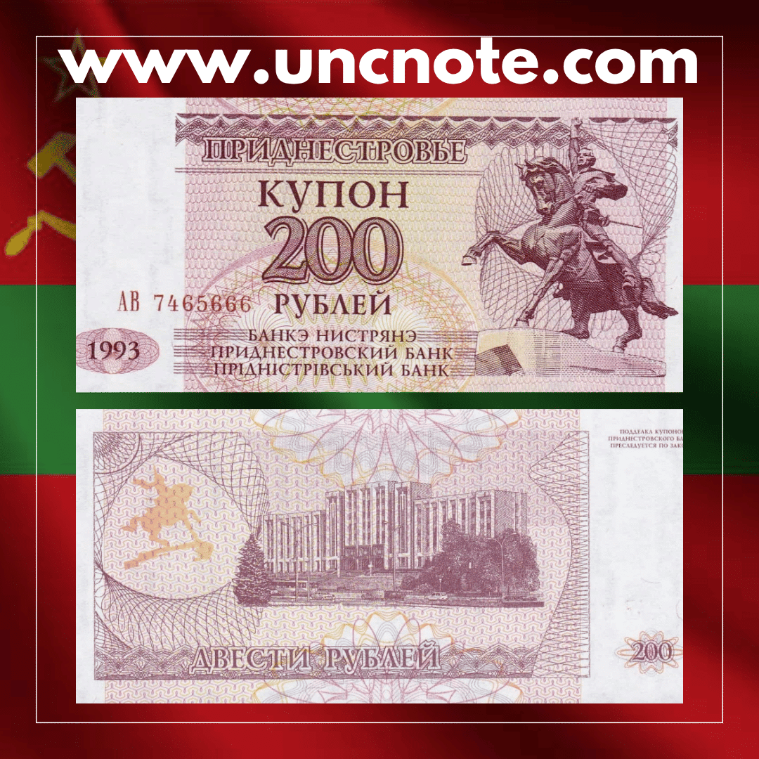 Issued by the Transnistrian Republican Bank in 1993, this 200 Rublos banknote is part of the earliest currency series of the Pridnestrovian Moldavian Republic, introduced shortly after the dissolution of the Soviet Union. These initial issues were essential in establishing Transnistria’s independent monetary system.