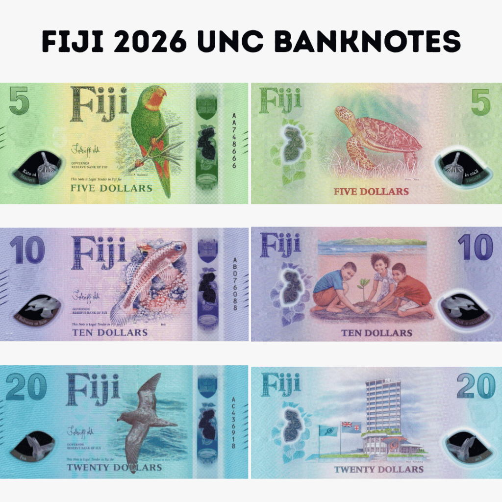 The Fiji banknotes 2026 polymer series represents one of the most visually striking and modern currency updates in the Pacific region. Known for their vibrant colors, tropical themes, and advanced security features, Fiji’s new banknotes are already attracting strong interest from collectors worldwide.